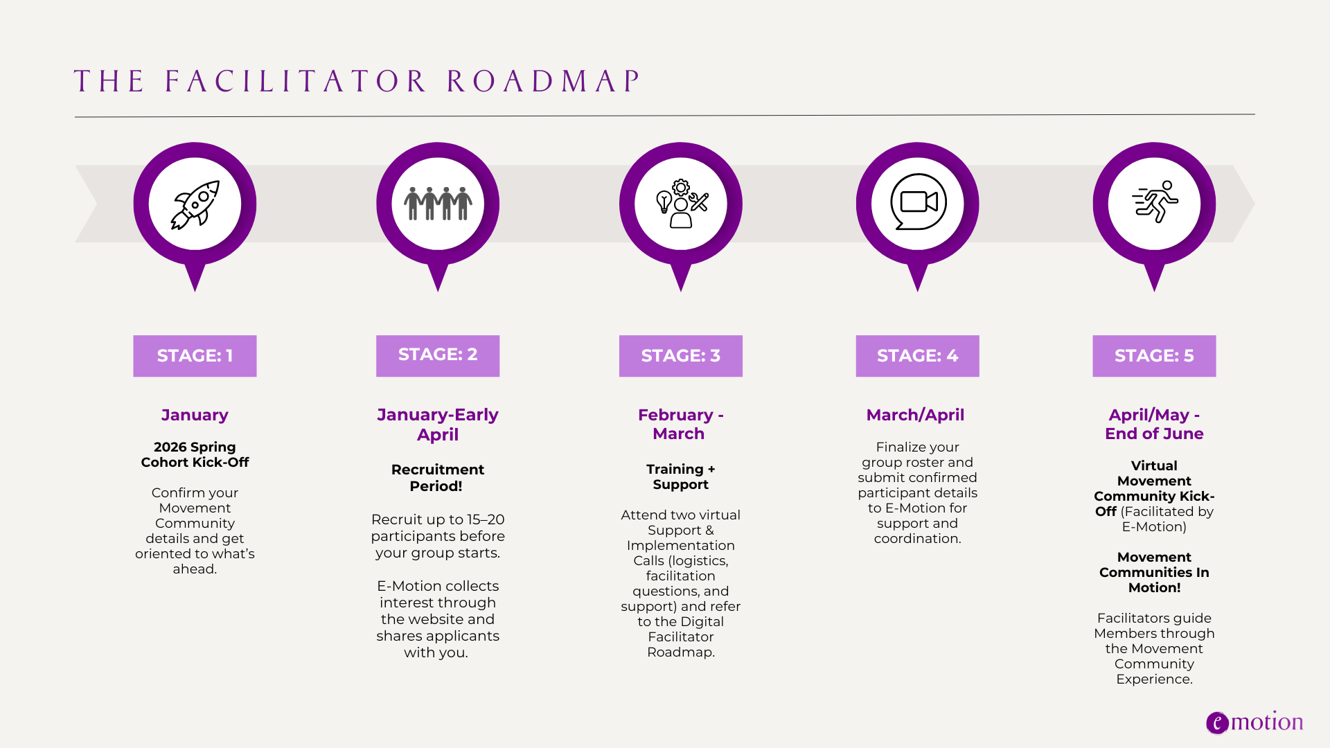 While E-Motion provides the tools, structure, and support, Facilitators lead the recruitment efforts in their local communities. Together, we’ll work to build a group that feels aligned, supported, and ready to move together.